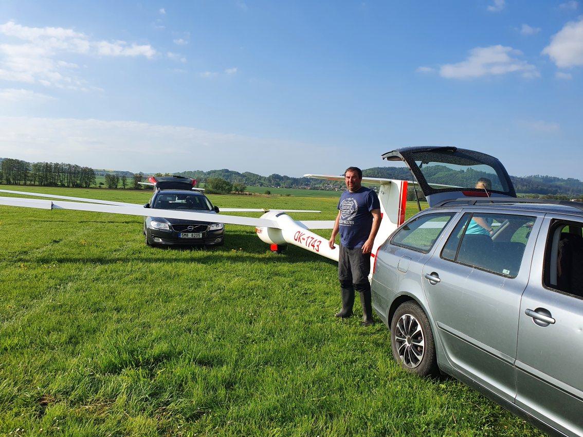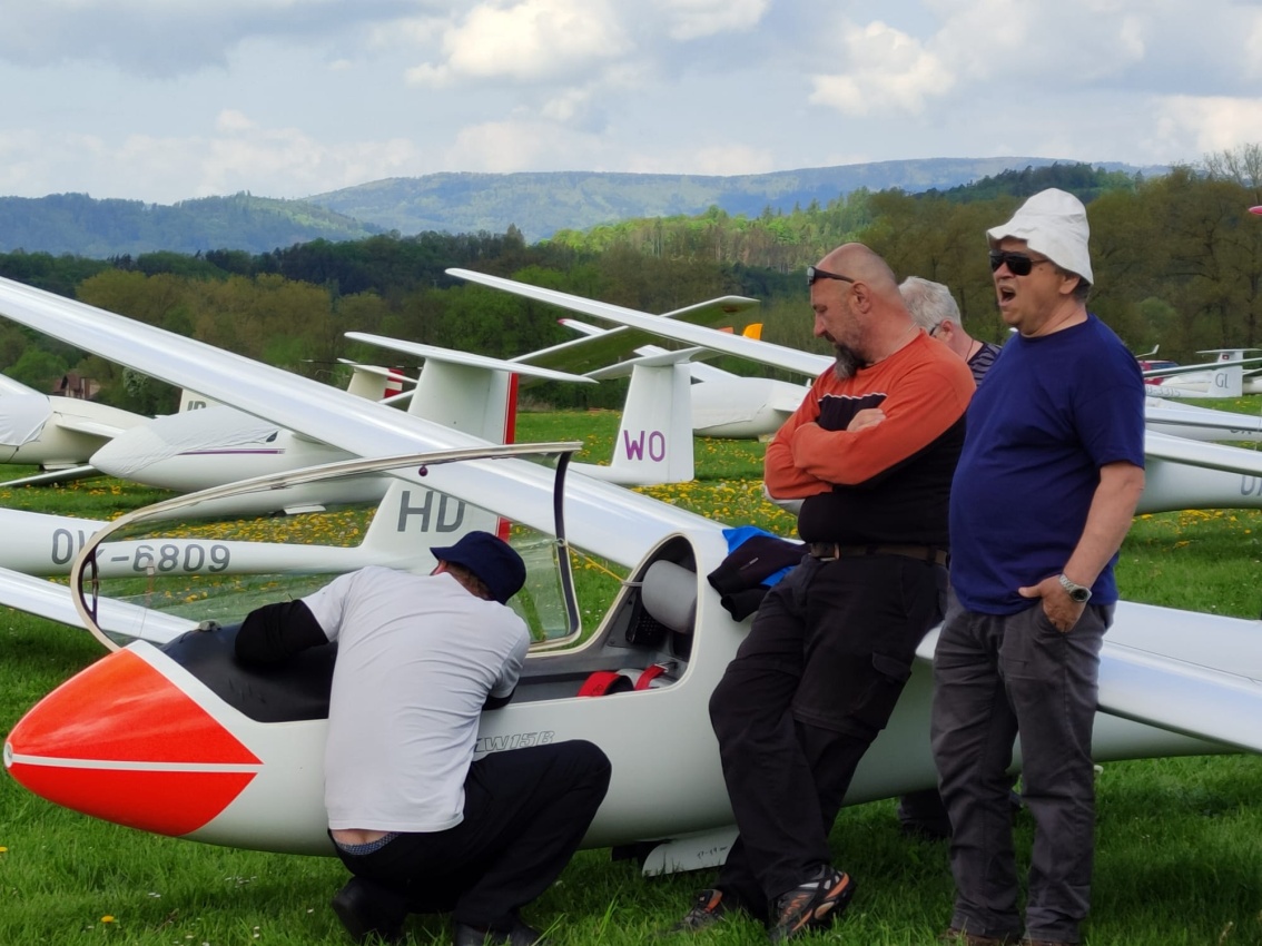 už je tady. Přistály kluzáky z klubovky JP, Taurus, 16, JT, AW, EM KE, Y1 NK, FK, 67...