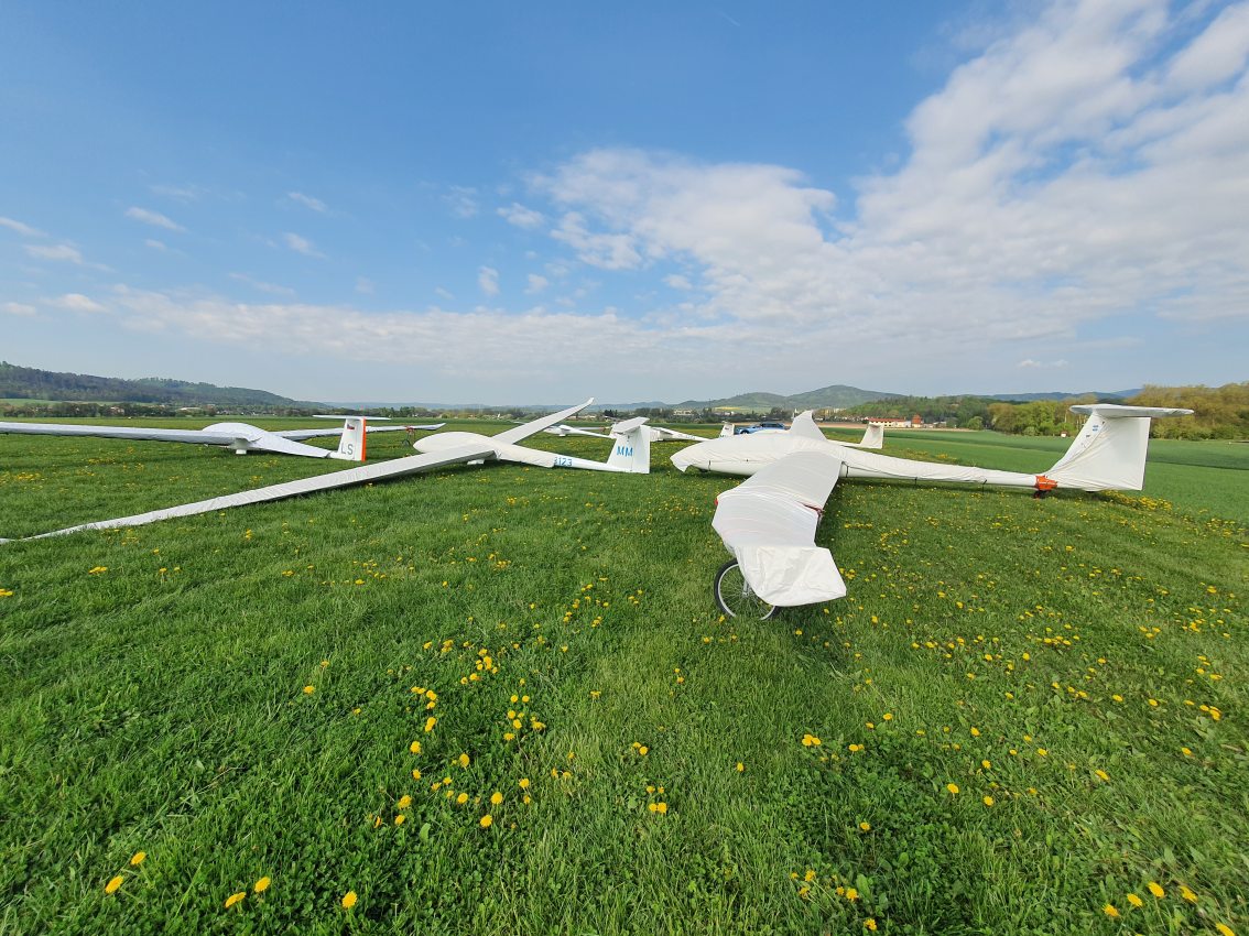 přistávají kluzáky kterým se podařilo celou trať obletět.